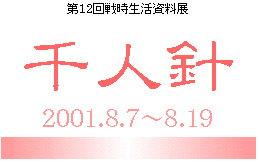 千人針は、出征する兄のために作ったことがあります。母が千人針の布(腰に巻けるぐらいの長さ)を用意し、朱肉で1000個印を押してそれに一ずつ赤い糸で玉結びを作ってもらいました。千人針は、賑やかなところ、人通りの多いところ(新道の商店街か?)に一人で行って「お願いいたします」と声を掛けて玉結びをしてもらいました。寅年の人には、年の数だけしてもらえ、普通の人は一つだけでした。