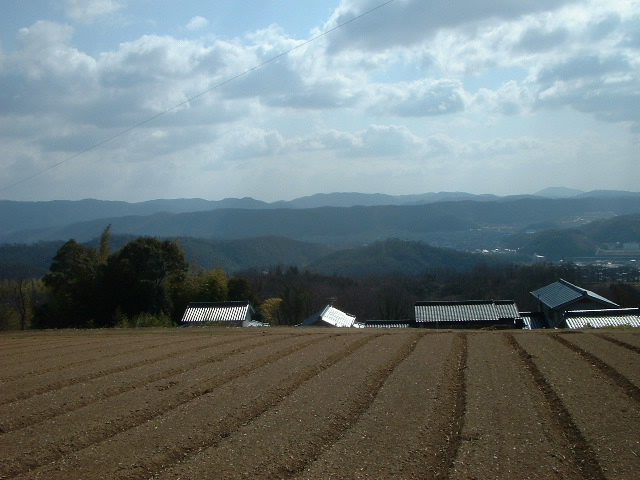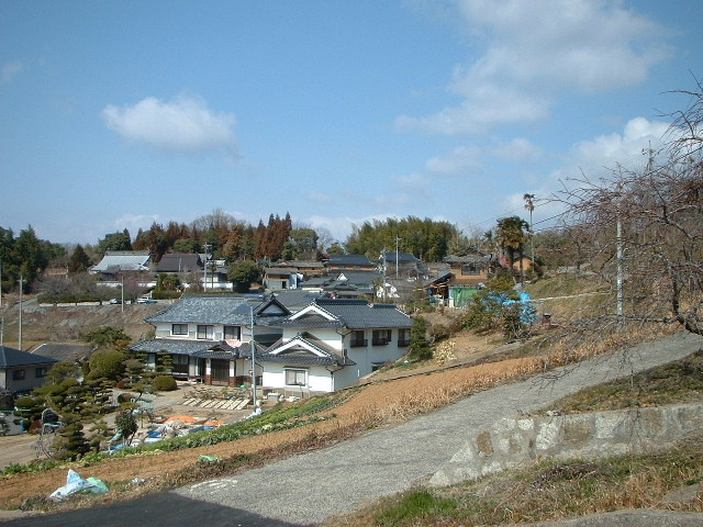 神戸からは人が二列となれない山道を上にあがっていく。 民家はひとつとしてない山道を上るとやがて点在する家がみえてくる。 そこが西江原町の賀山というところである。 母はここで生まれ昭和17年に茂平へ嫁いできた。 |