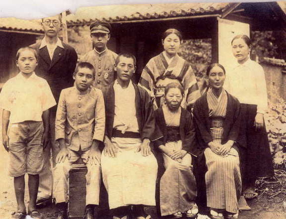 叔父は5人兄弟の5番目として、昭和3年賀山で生まれた。 左より(叔父との関係) 後列・長兄・次兄・次姉・長姉。 前列・本人・客人・父・祖母・母。 。 |