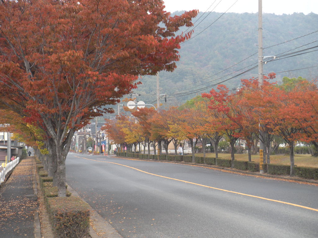 紅葉の運動公園横街路樹