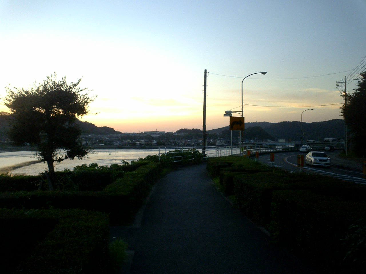 | 夕陽の名所。海と山に夕日が沈んでいた。 海は水道になり、山は旭ヶ丘になった。 |