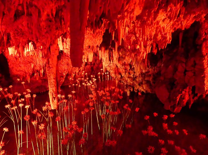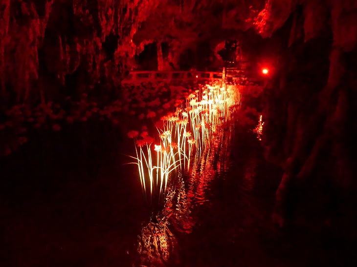 洞窟の水たまりに彼岸花が咲いて、そして水に写る。