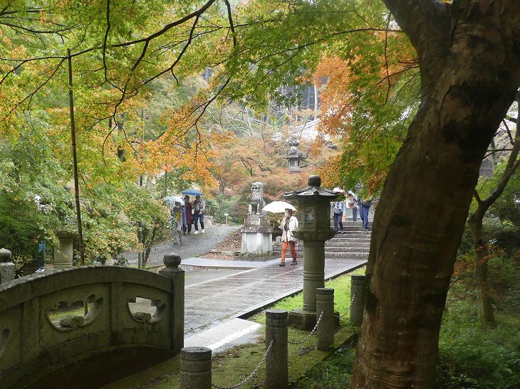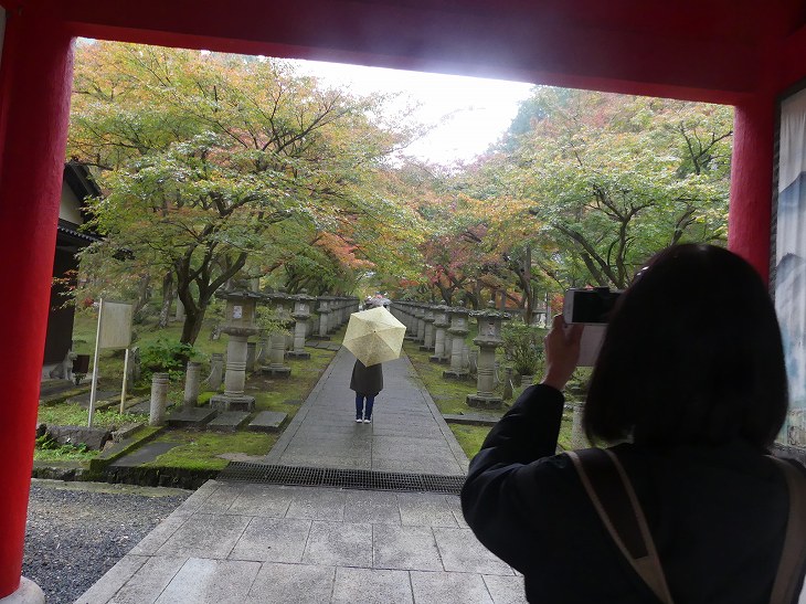 山門と、そこから前に見える本堂までの参道がモミジの道。