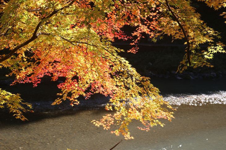 天神様の対岸(左岸)から見る紅葉。