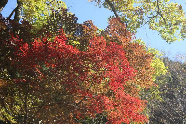 赤青黄色、紅葉見頃。
