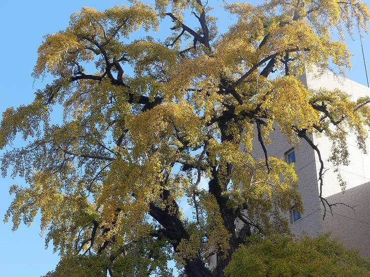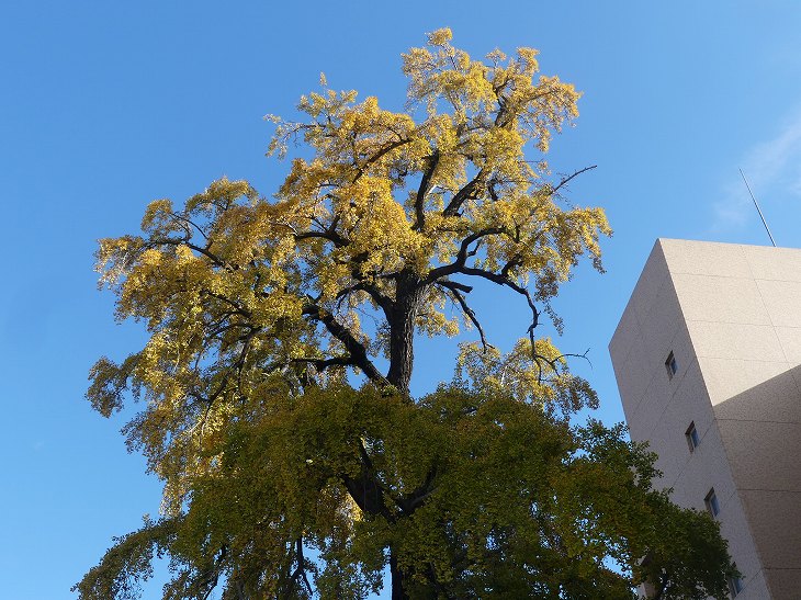 多宝塔をはさんで、もう一本あるイチョウはまだ色づき始めだった。