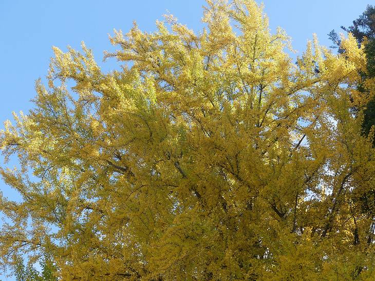 時間稼ぎに黄葉山に登ってくれば、天気もよくなり、イチョウも光が差すだろう。