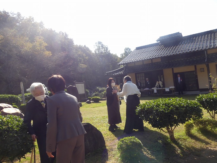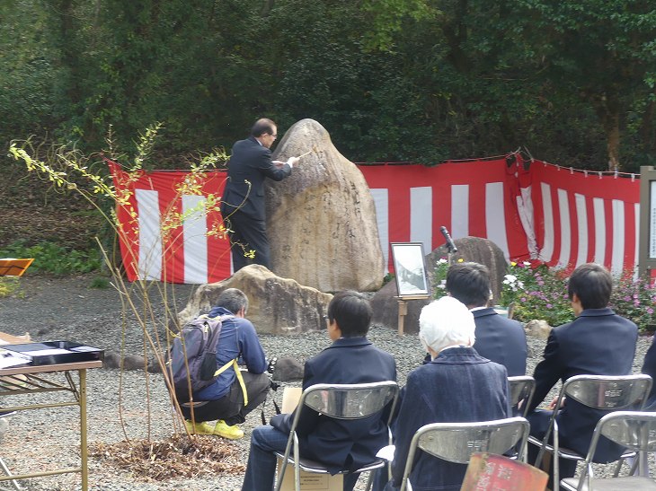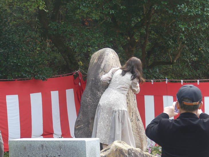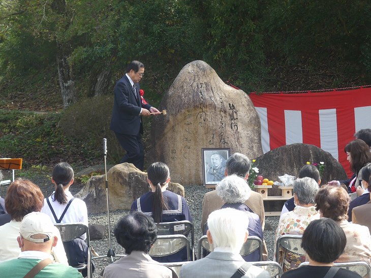 婦人は短歌の先生で、歌碑に向かって捧げる。