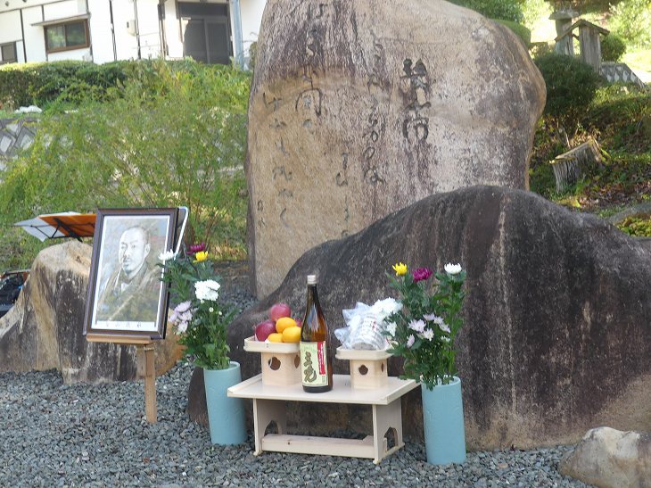 歌碑の前には、牧水先生の写真とお酒。