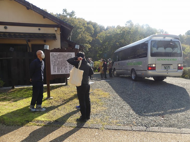 写真↓に映るバスは、この式典へ鉄道利用の参加を促し、行政の補助でチャーターしたバス。