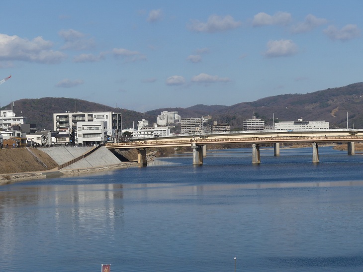 月見橋を渡る。