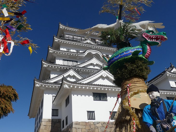 天守閣と「とんど」。