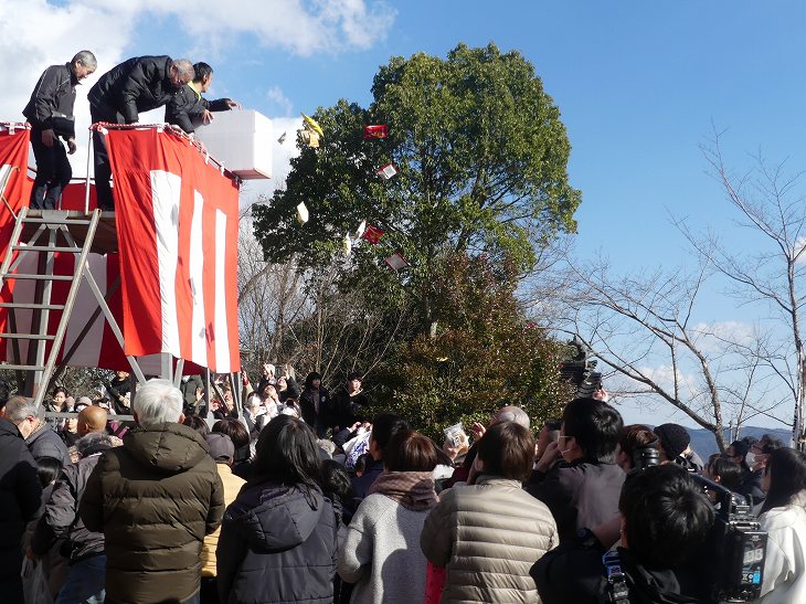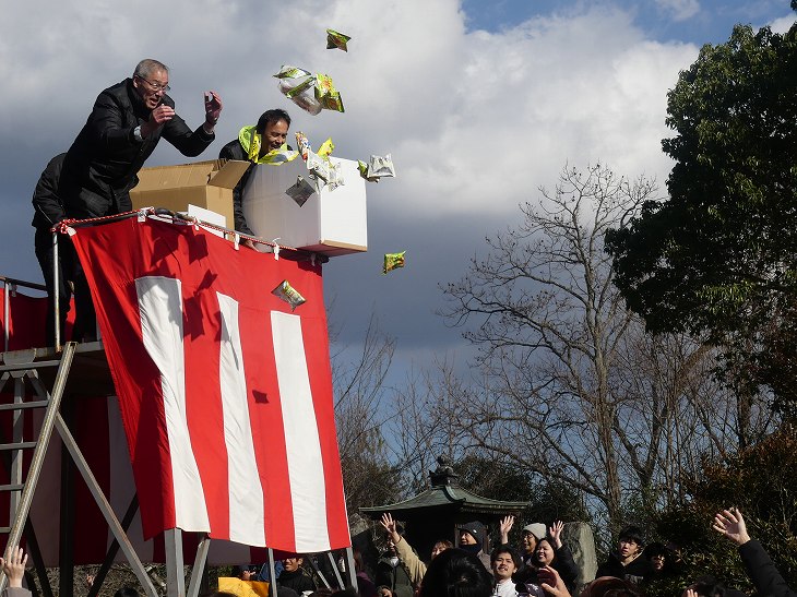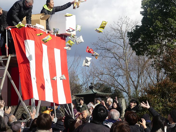 摩利支天の大祭は、帰路にはほぼ全員が両手に袋を提げている。