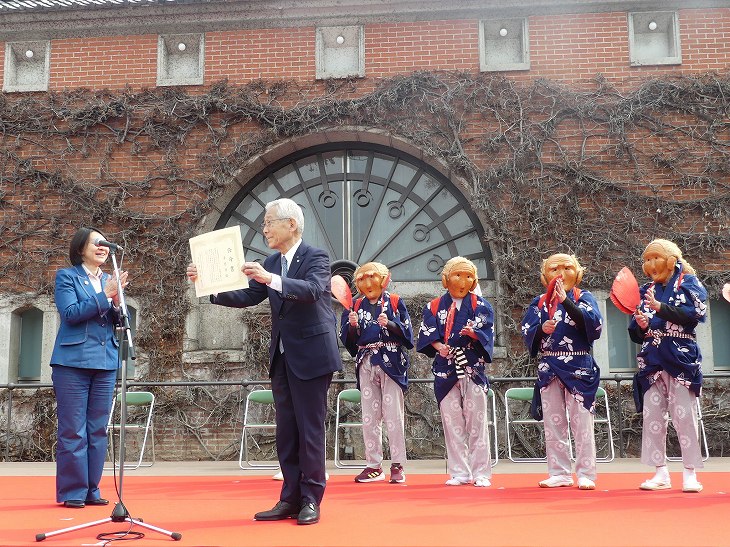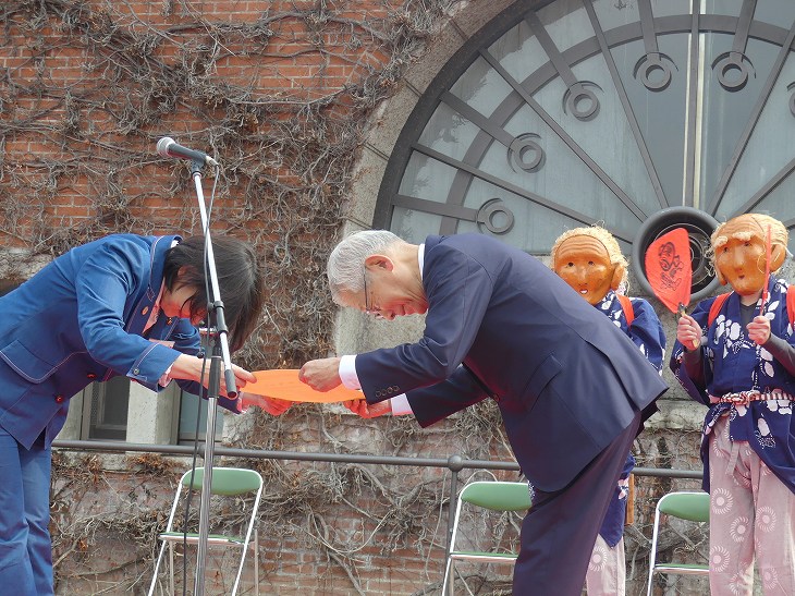 倉敷市長から、素隠居の会長さんに「任命書」が渡された。