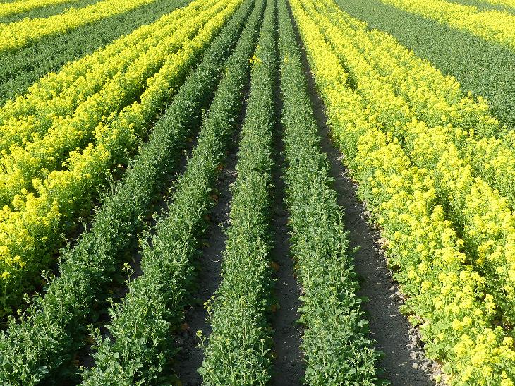 菜の花畑Cは、黄色と緑色の模様が見事だった。