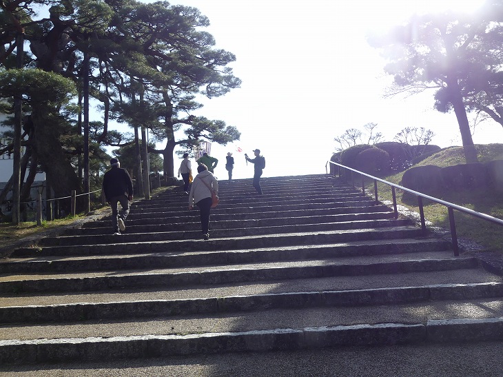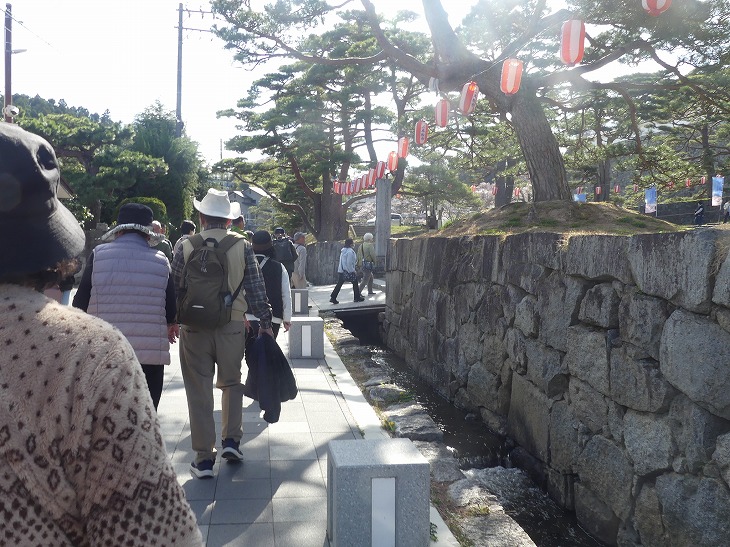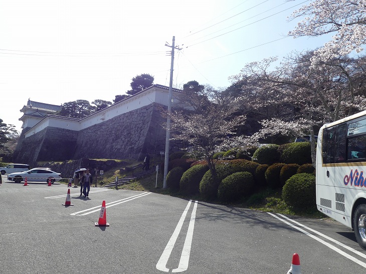 観光バスはお城の石垣のすぐ近くに停まった。