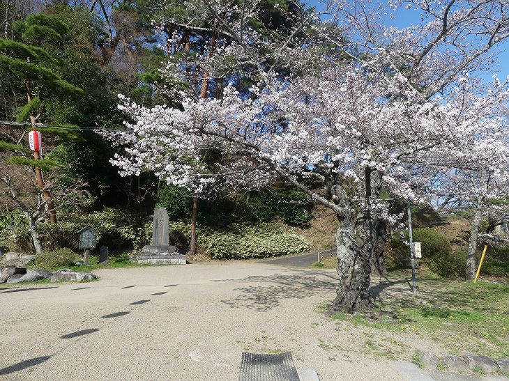 幟には「ほんとのそらに さくらまう」と書かれている。