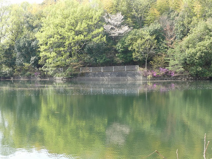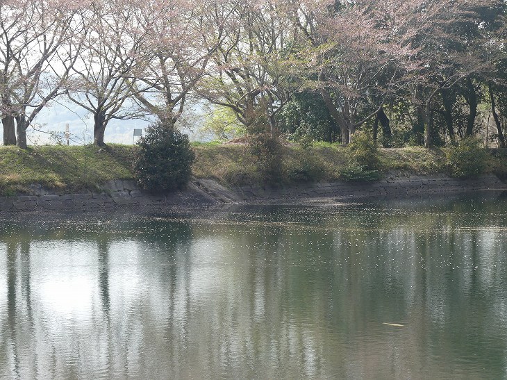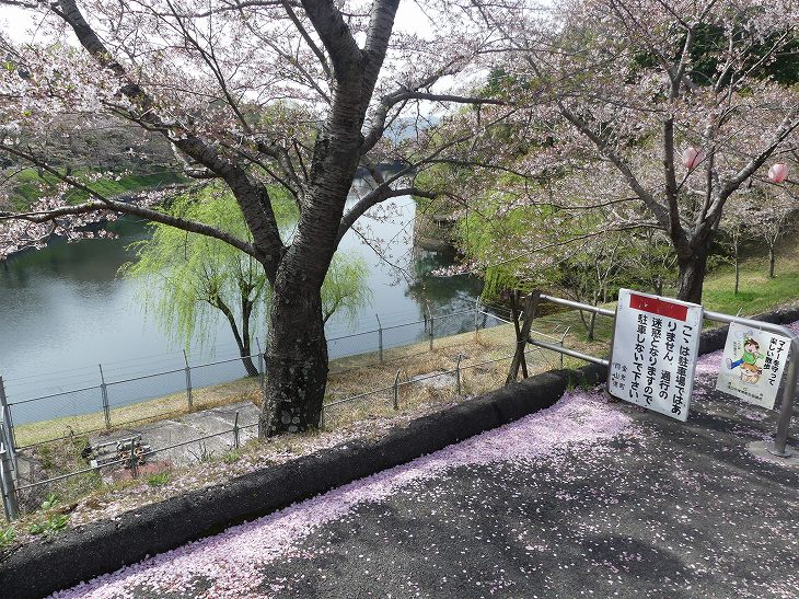 池には桜が浮かんでいる。