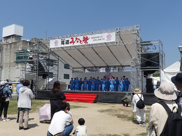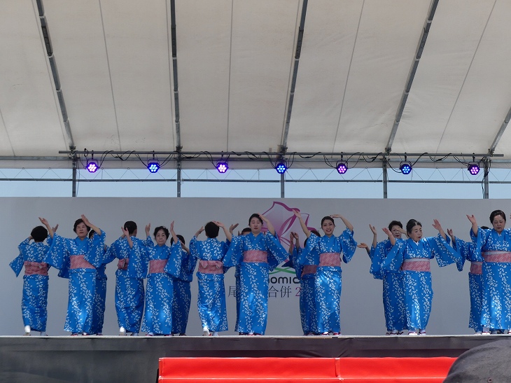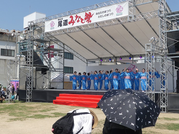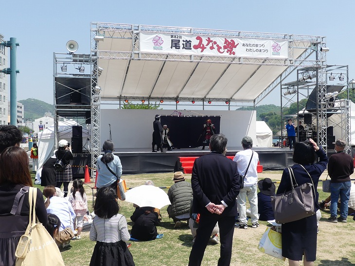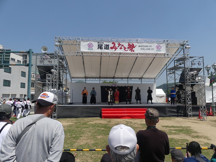 ステージでは”姉妹都市郷土芸能披露”のうち、島根県松江市の「まつえ若武者隊」の実演中。