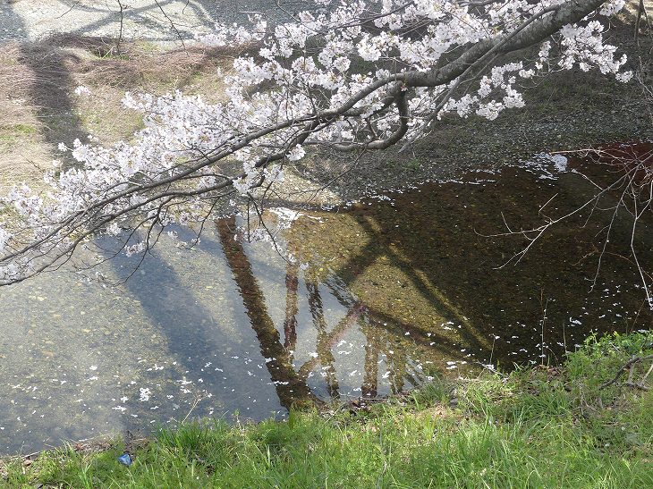 小田川には早くも、小さいながら花筏が見える。