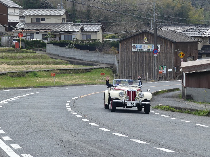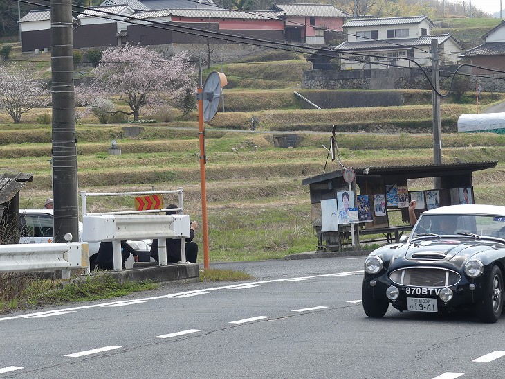 東大戸でクラシックカーを待つ。