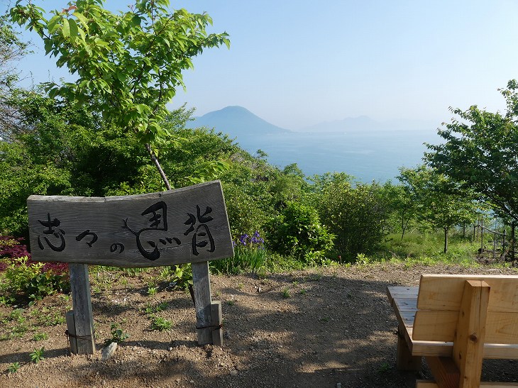 休憩所やイスやブランコなども設置された志々島名所。