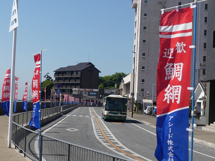 「観光鯛網」の幡が並んでいるが、5月6日のGW最終日が鯛網の最終日だった。