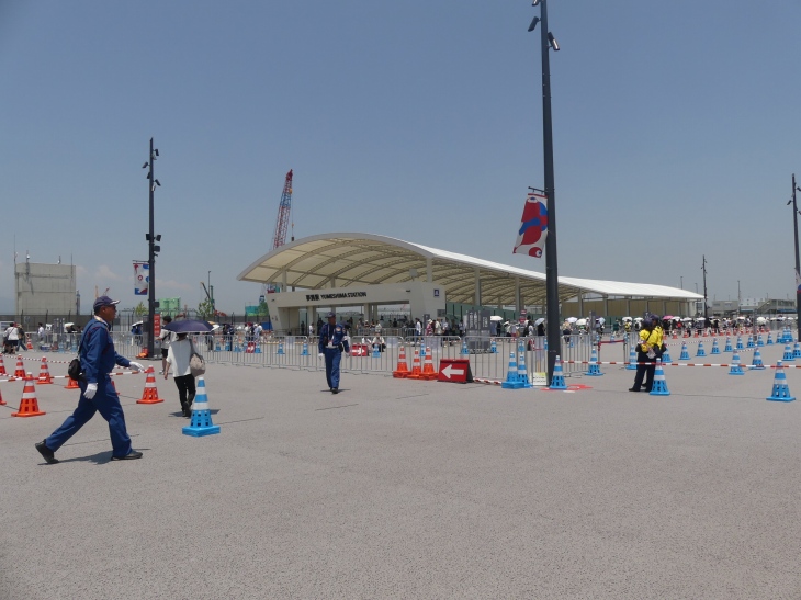 ほら前方の夢洲駅から手荷物検査までウソのように人がいない。