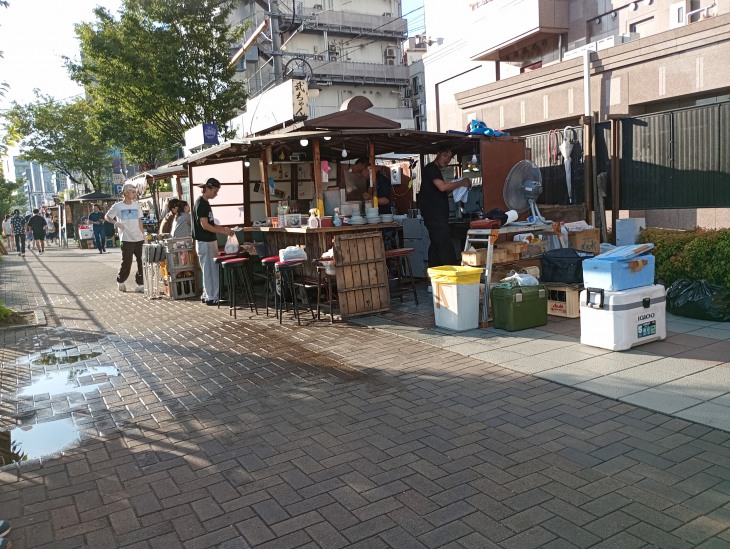 那珂川沿いでは博多名物の屋台も準備に忙しそうだ。
