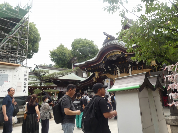神社の内外は、祇園山笠の最終時間が近いという緊張感、雰囲気があった。