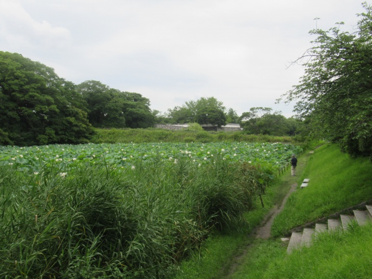 福岡城跡の水堀には白い蓮が咲いてる。