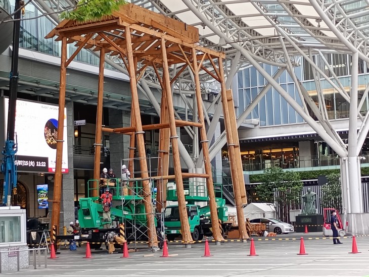 「飾り山笠」は人形は撤去済で、小屋は解体作業中。