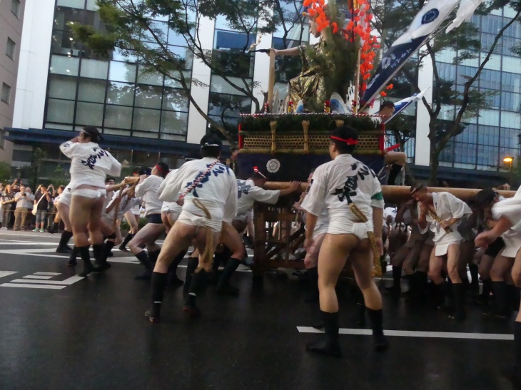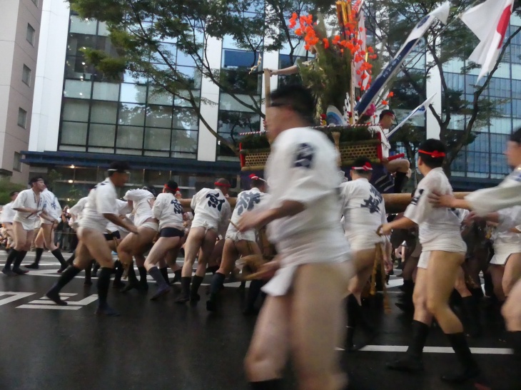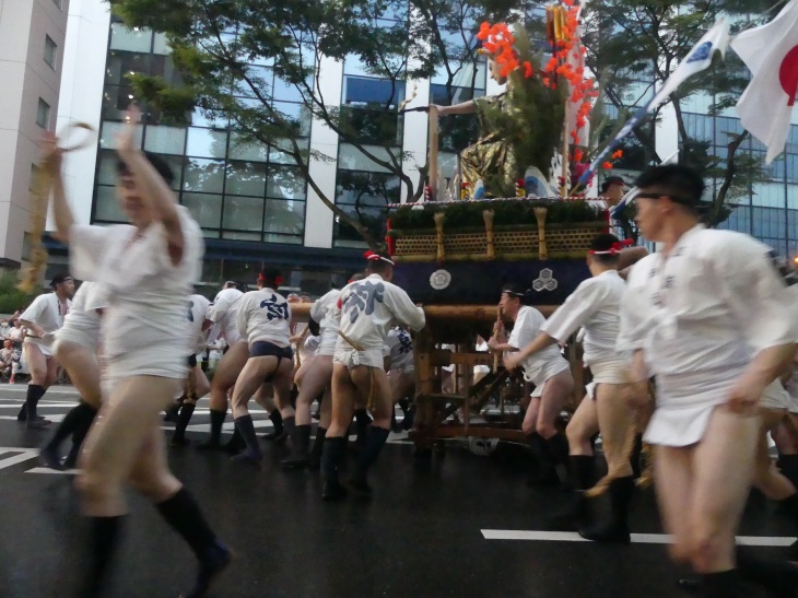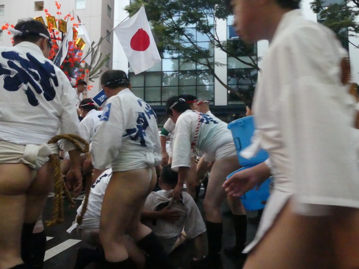 山笠がスピードをゆるめた。