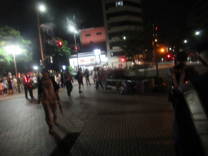 ホテルを出ると、暗い夜道を櫛田神社に向かう人たちがつづいていた。