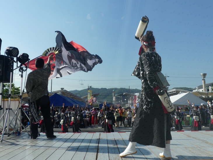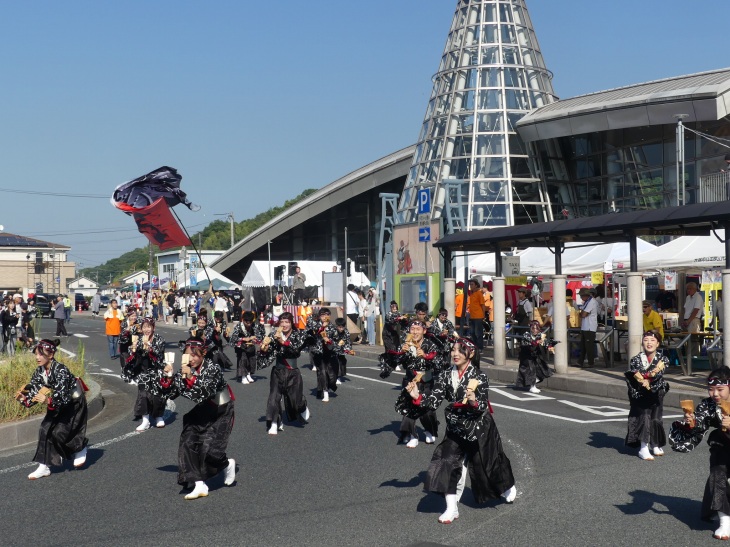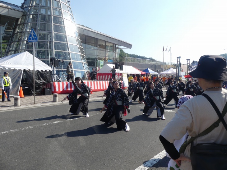 駅前ステージで演じ、そのまま広場を踊りながら周回する。