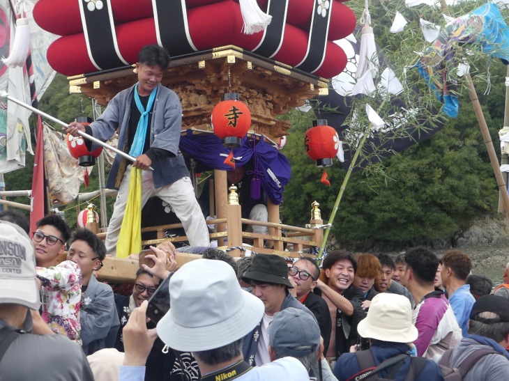 島の天神さんに着いたら、「見崎達磨会」の宮入りのところだった。
