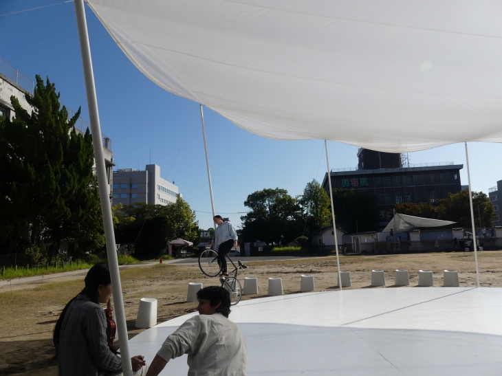 西手櫓の隣にたいへん立派な土俵があるが、そこにアート。