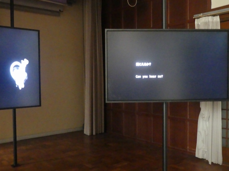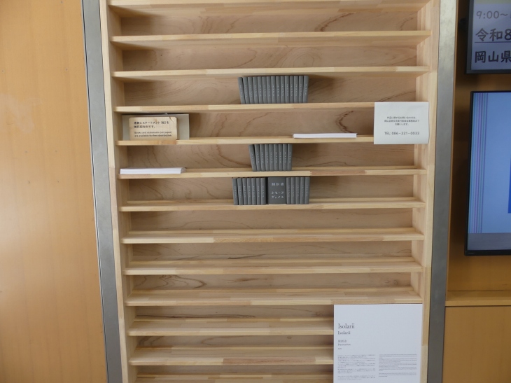 図書館の受付のすぐ隣に展示。作者に申訳ないが、ちょっと意味不明に感じた。