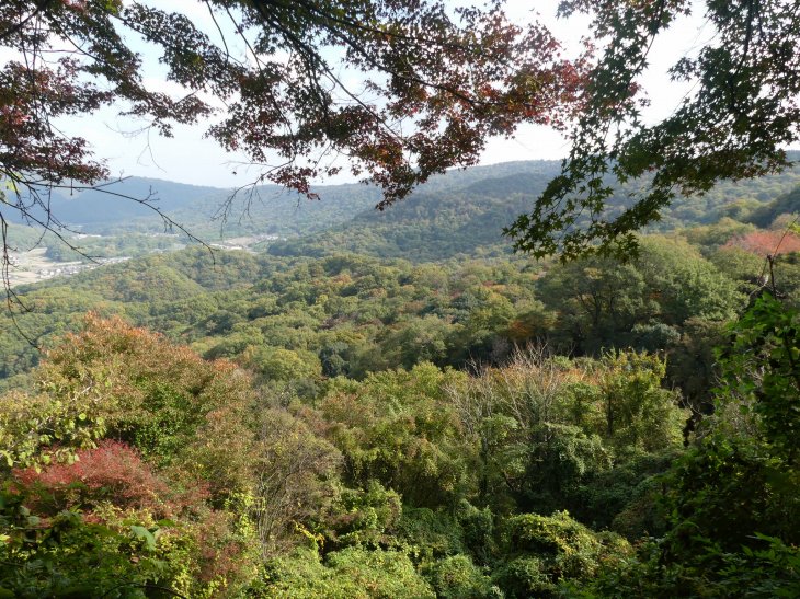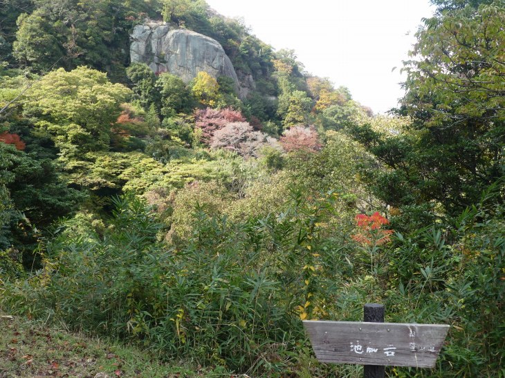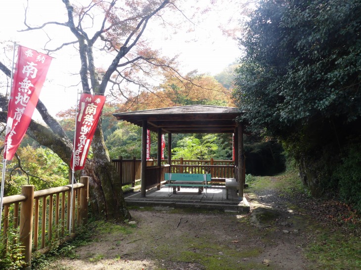 地蔵岩の地蔵さん前。周辺は秋色でいい眺め。