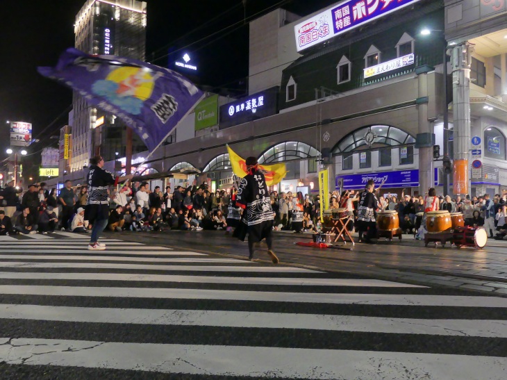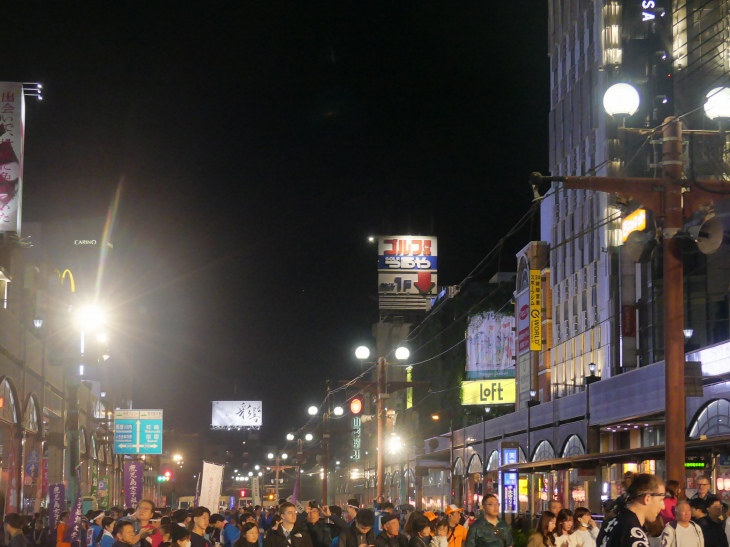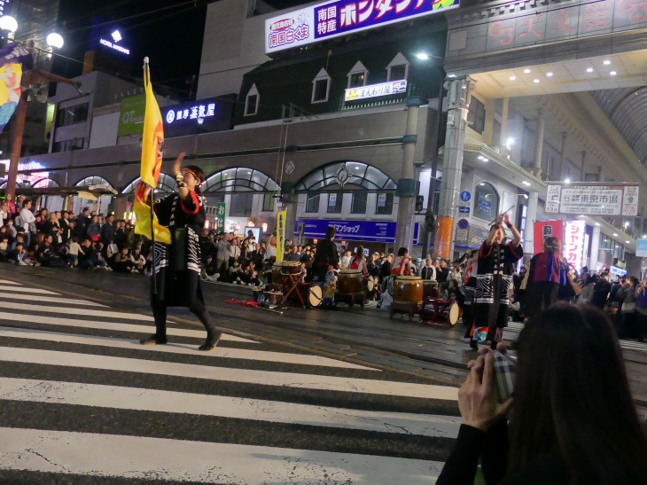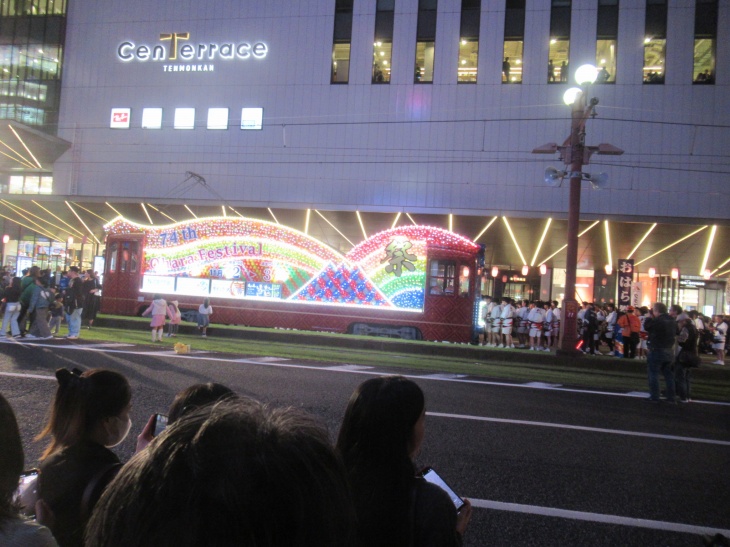 午後6時50分にホテルを出て電車通りを「おはら祭」の会場方面へ向かった。