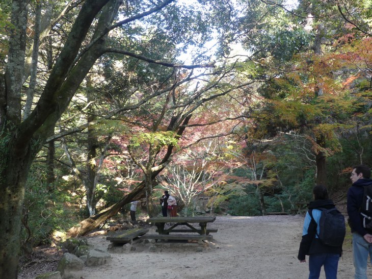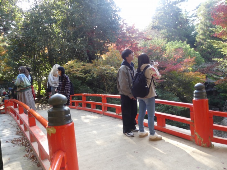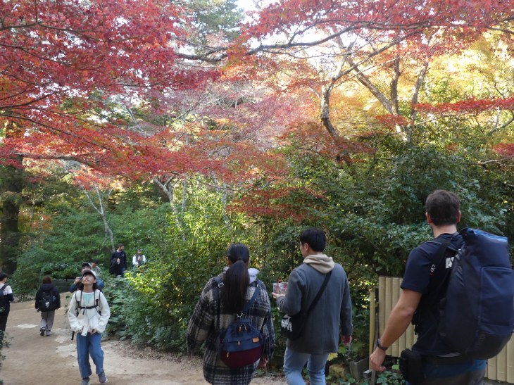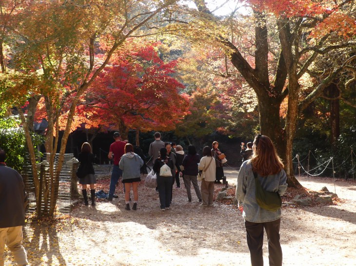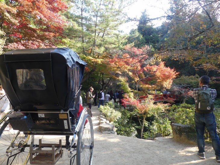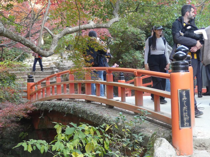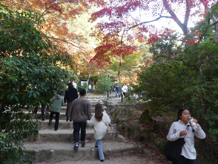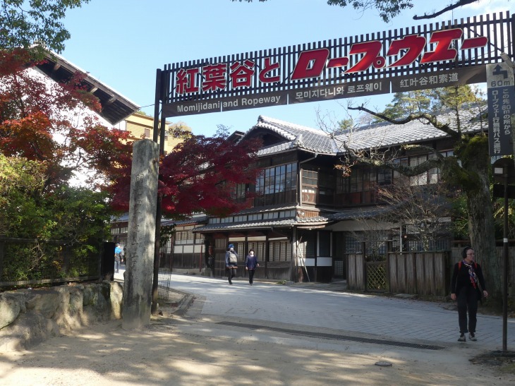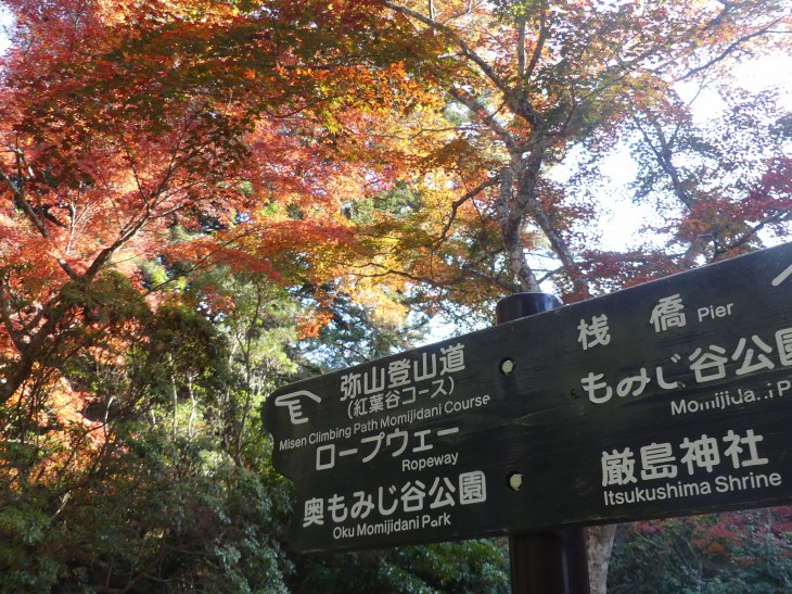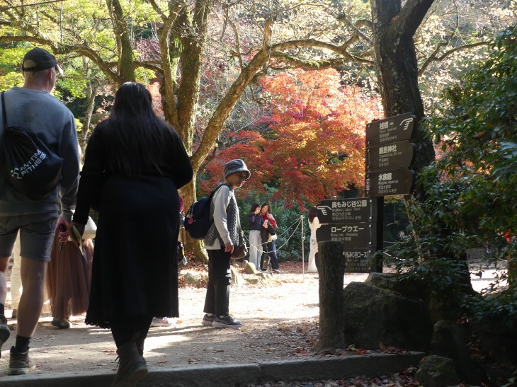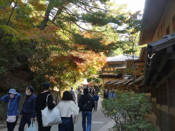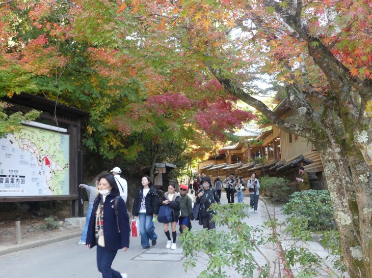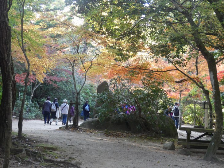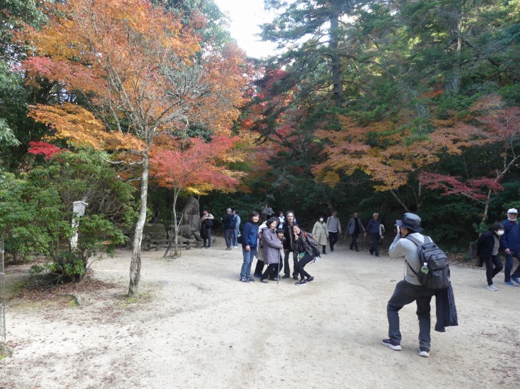 紅葉狩りの人、ロープウエィへ行く人、弥山へ登る人、その人たちで公園に人は多。