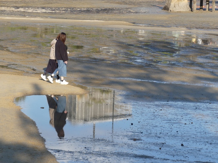 大鳥居と干満状況と人を記録した。