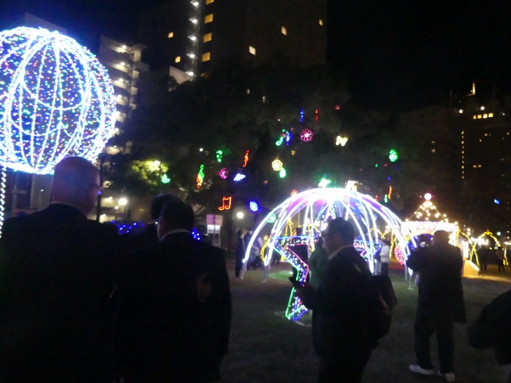 仕事帰りの人たちや、家族連れでイルミを見に来た人。