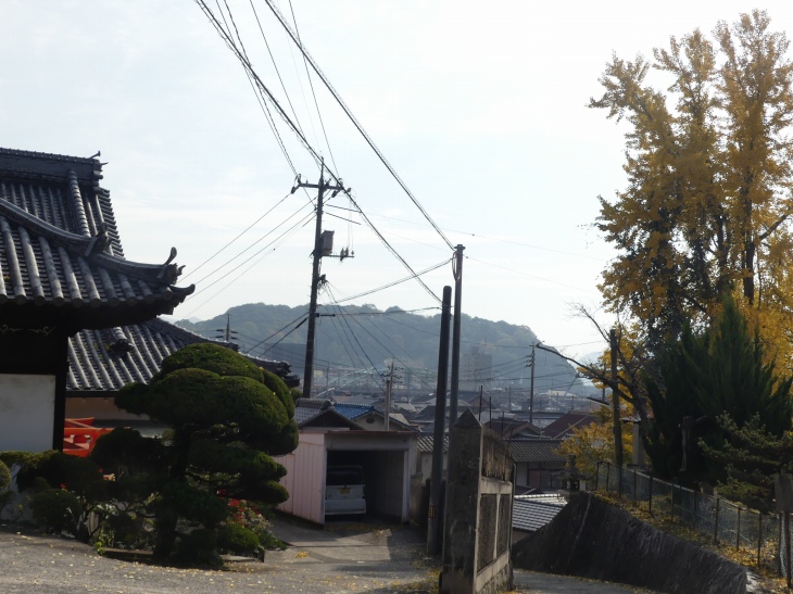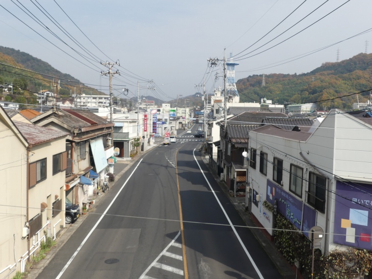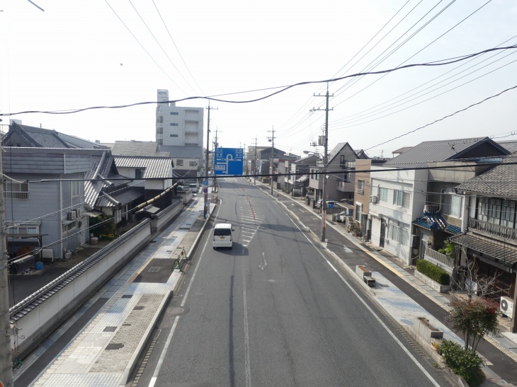 途中、県道井原・笠岡線の歩道橋の上から見る笠岡市街地・南。