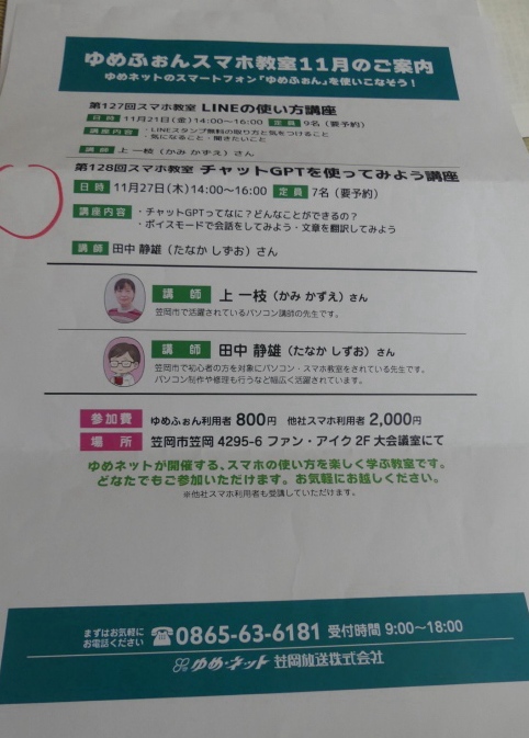 この日、追分の「笠岡放送」の2階でゆめふぉんスマホ教室があった。
