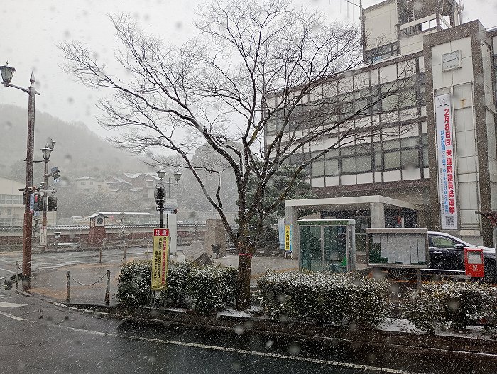 (雪の笠岡は珍しいので記録写真)