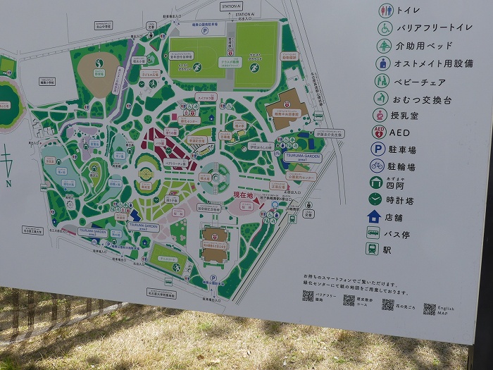 「噴水塔」と「奏楽堂」の中間区域が、食べ物や休憩や花壇で一番賑やか。