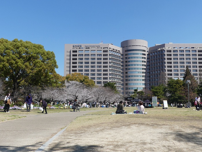 「名古屋大学病院」、その左に「名古屋工業大学」がある。