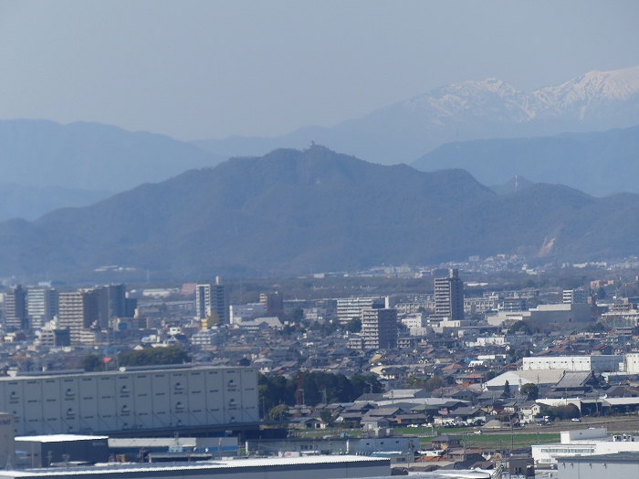 写真中央に金華山「岐阜城」。