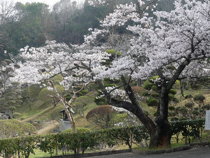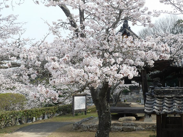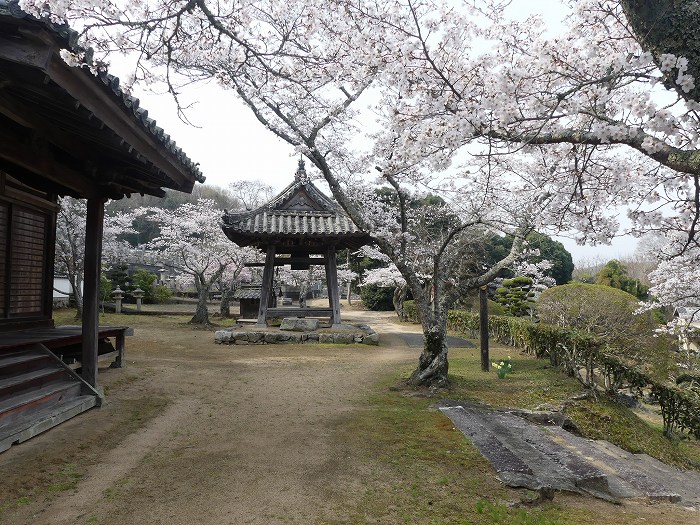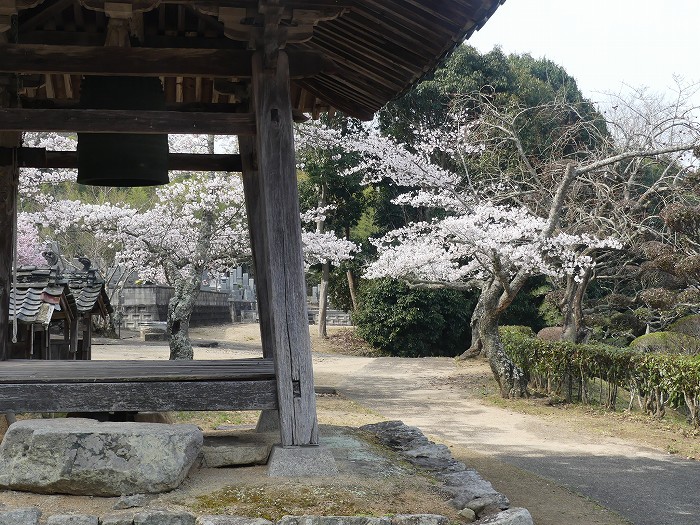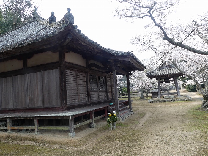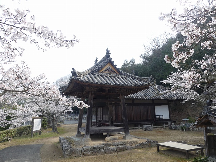 笠岡市最古の建築物は風格が漂い、桜がいっそう美しい。